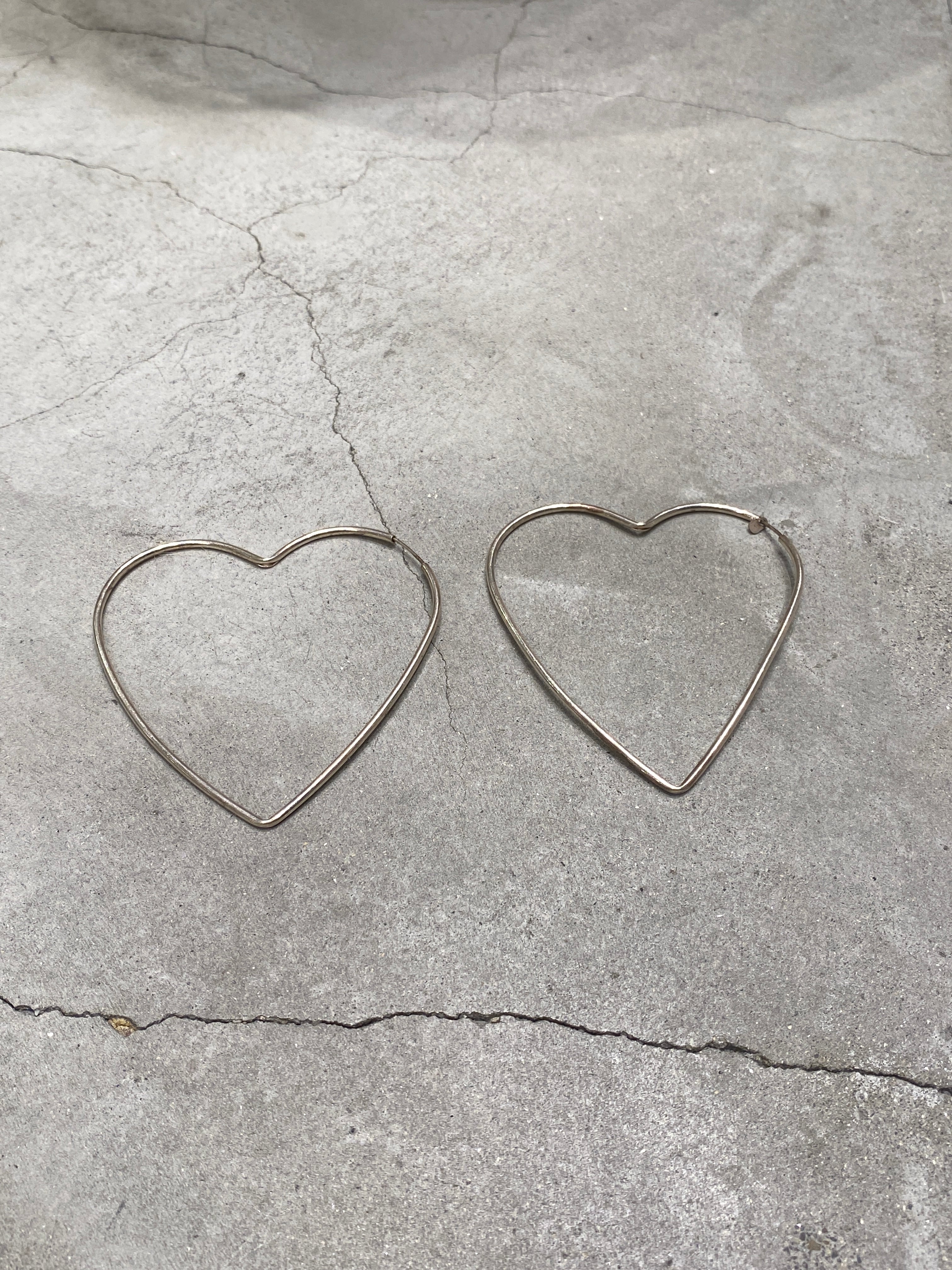 シルバーの輝きが際立つ「Heart motif hoop pierce」。キュートなハート型モチーフが耳元に愛らしさを添えるアイテムです。