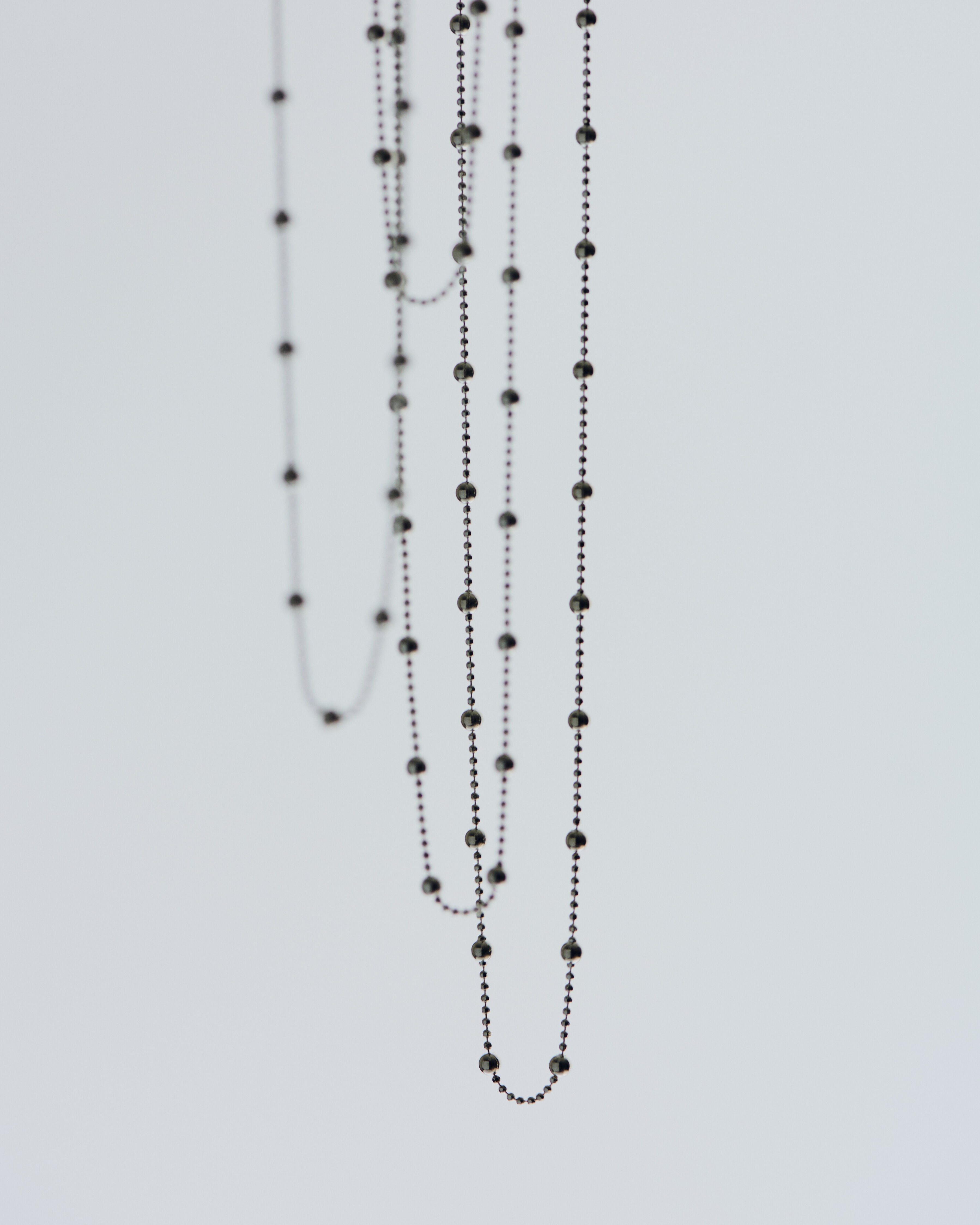 シルバーの輝きが際立つ「cutting ball necklace」。可愛らしさと美しさを兼ね備えたデザインが、首元に上品なアクセントを与えるアイテムです。