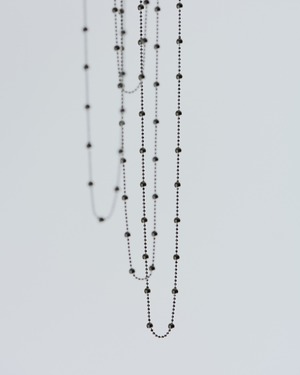 シルバーの輝きが際立つ「cutting ball necklace」。可愛らしさと美しさを兼ね備えたデザインが、首元に上品なアクセントを与えるアイテムです。