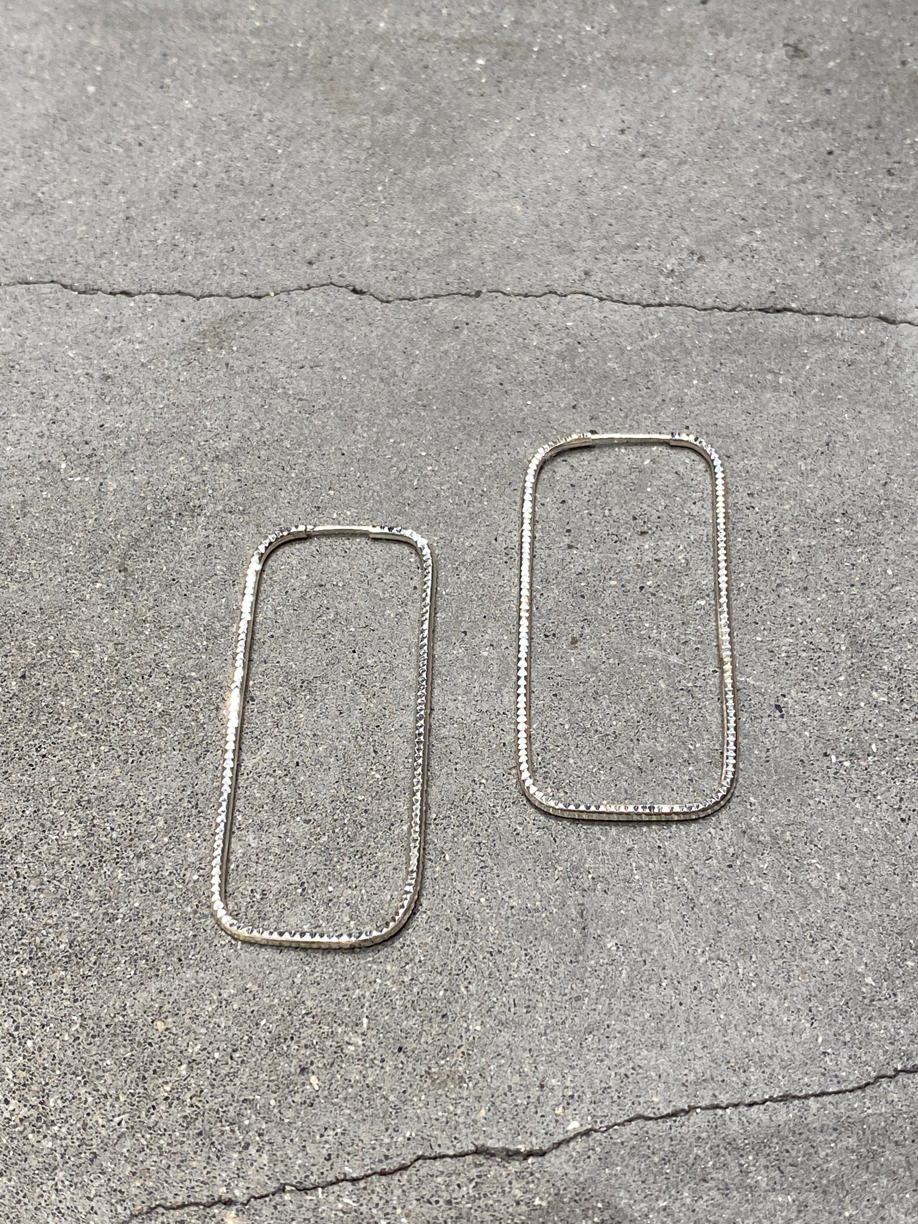 シルバーの美しい輝きが魅力の「square hoop pierce "cutting"」。直径6cmのカットデザインが耳元に洗練された印象を与える特別なアイテムです。